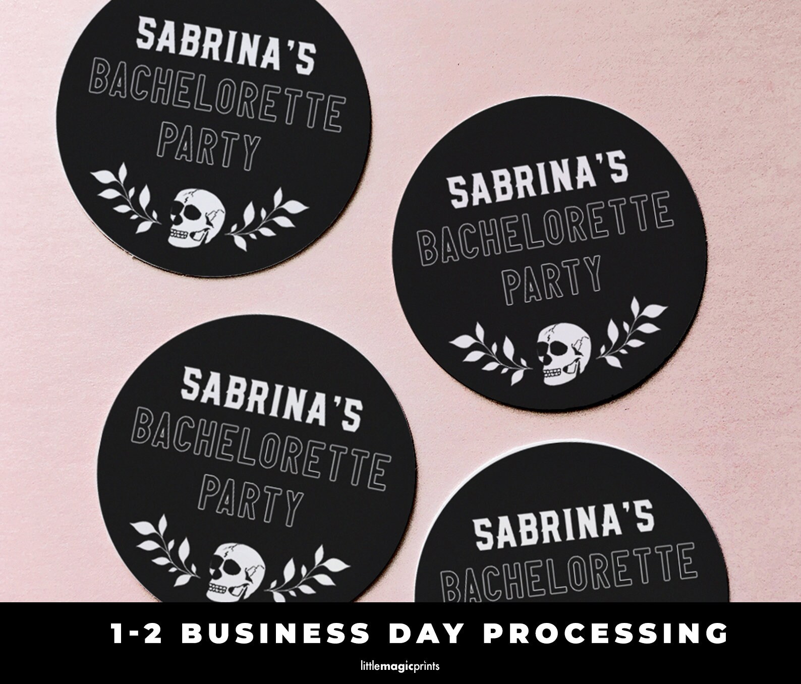Custom Bachelorette Party Stickers & Labels - Right On The Walls We offer easy to order custom printed bachelorette stickers for your event. The labels are offered in 2.5" and 3.5" round sizes, the party decals work great on envelopes, party favors, goodie bags, cups, water bottles or other areas. Printed in your choice of color on high quality permanent water-resistant white vinyl. Instructions for Ordering: